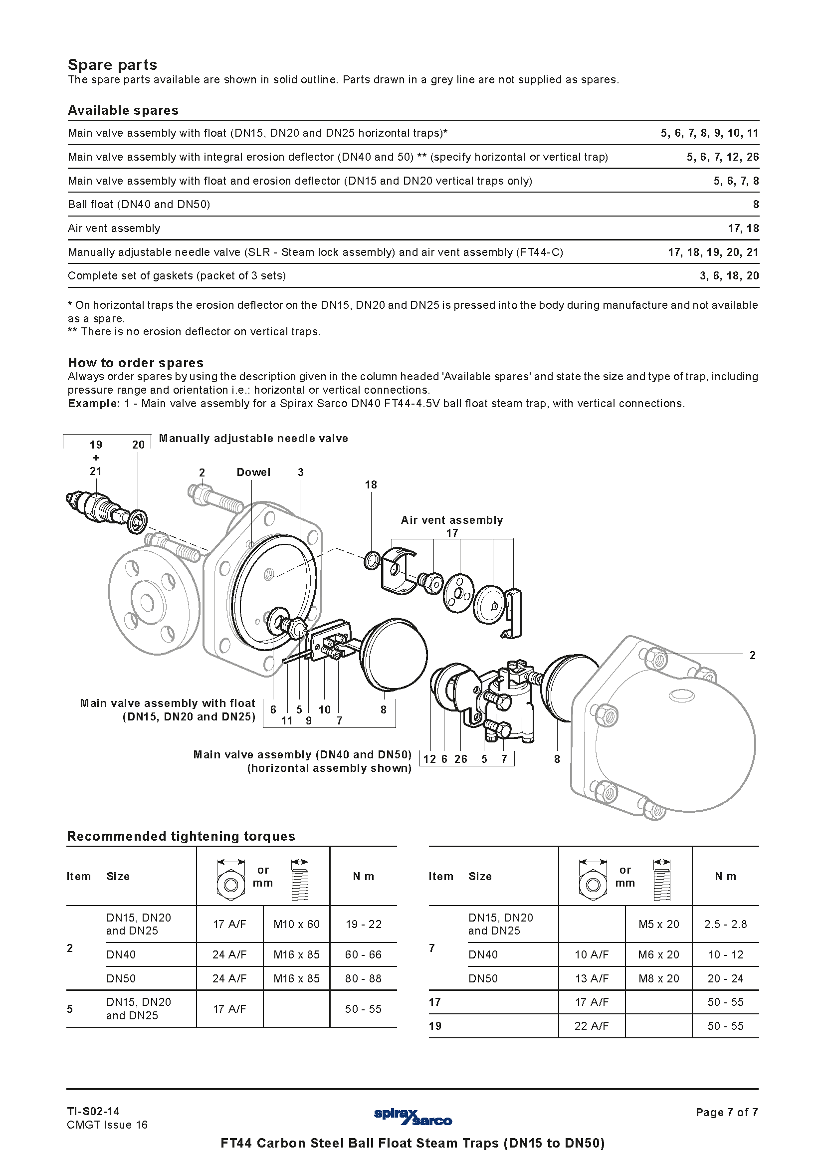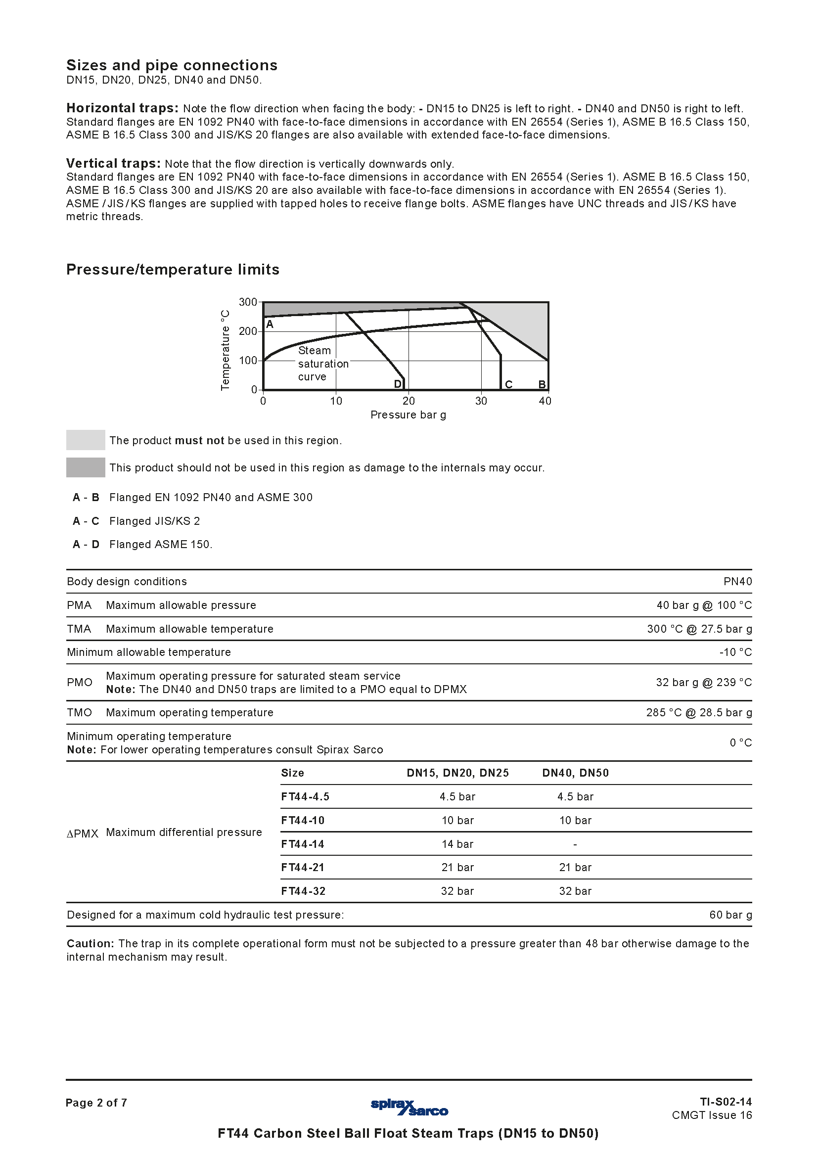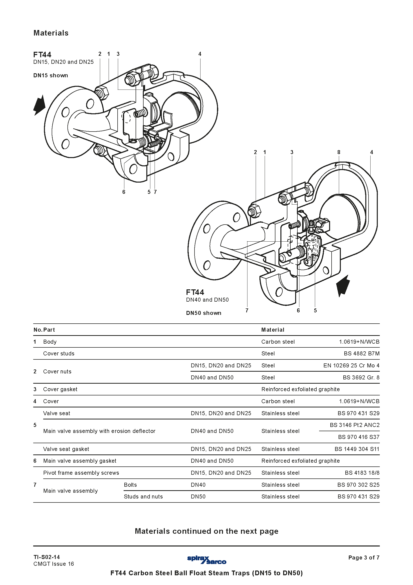 Bẫy hơi phao bi thép carbon Spirax Sarco FT44 (DN15 đến DN50) TI-S02-14