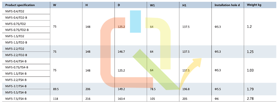 Kích thước của biến tần Chint NVF5: